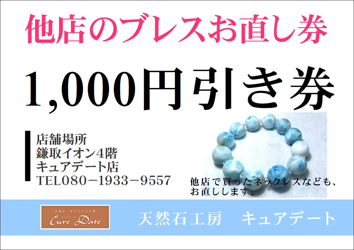 2026.03.14 他店で購入したブレスなども、お直しします。1000円引き券