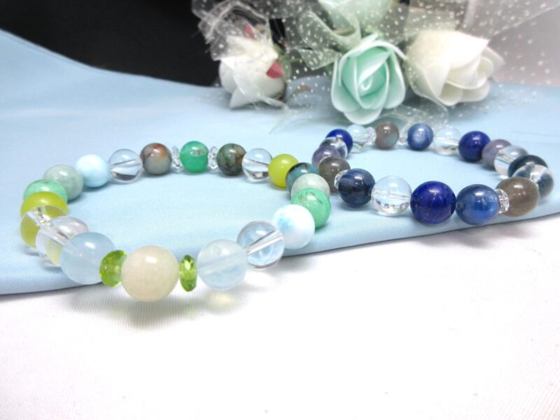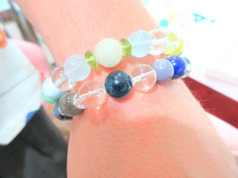 千葉 東京 パワーストーン 占い 津田沼店にご来店のI様 リビアングラス & ヒーラーライト と アパタイトキャッツアイ & タンザナイト のブレスレットのリメイク