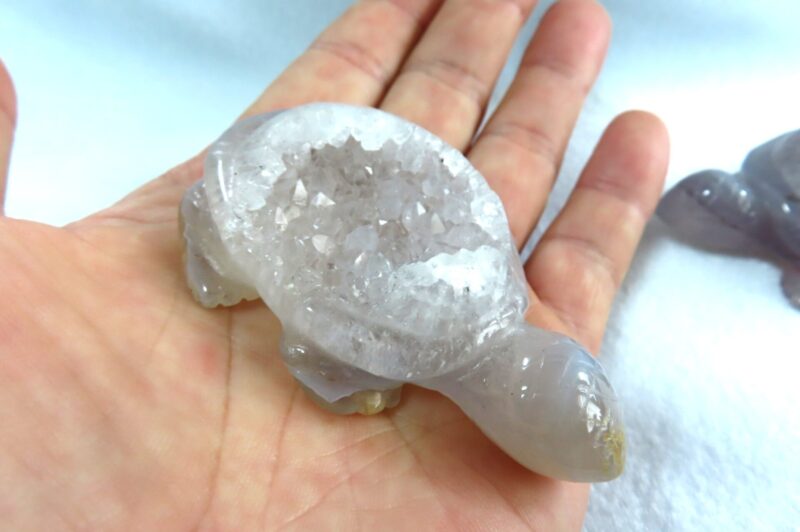 紫色のアメシスト ミニクラスタ 入荷 亀さんのメノウも、入りました。 2025.09.25 玄関 トイレや 寝室に、置くと安眠効果、邪気を消す 浄化してくれるトイレ そんな使い方が一番です。 幸運の亀さん、トレジャーメノウになり、 黄金を運んでくるという伝説の亀です。 かわいくて、たまりません。
