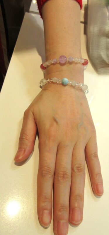 今日の、新しいおつくりしたブレスは、愛と平和の石 ラリマーと、人間関係を
