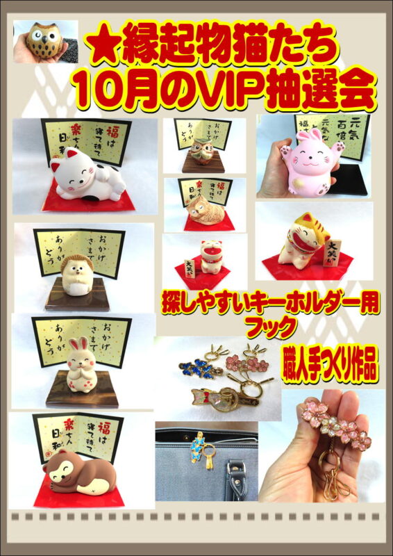 かわいい縁起物 もらえます 10月のVIP抽選会で、抽選券 配布開始です。