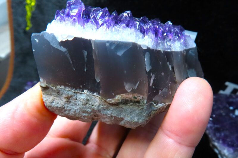 特徴は、ほかのアメシストには、あまり見られない、母岩となるメノウにあります。
