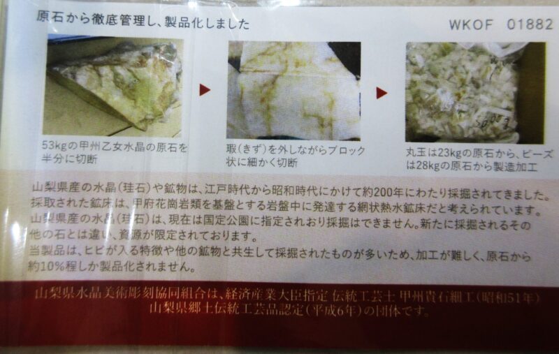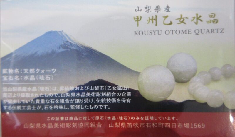 山梨県 甲州乙女水晶 日本でも珍しい 国産の水晶ブレス 展示販売中
