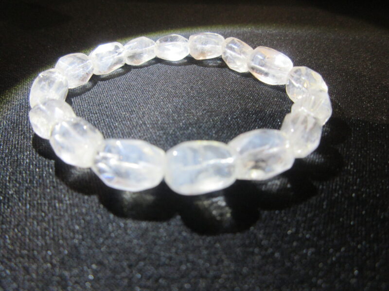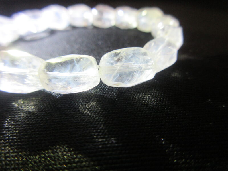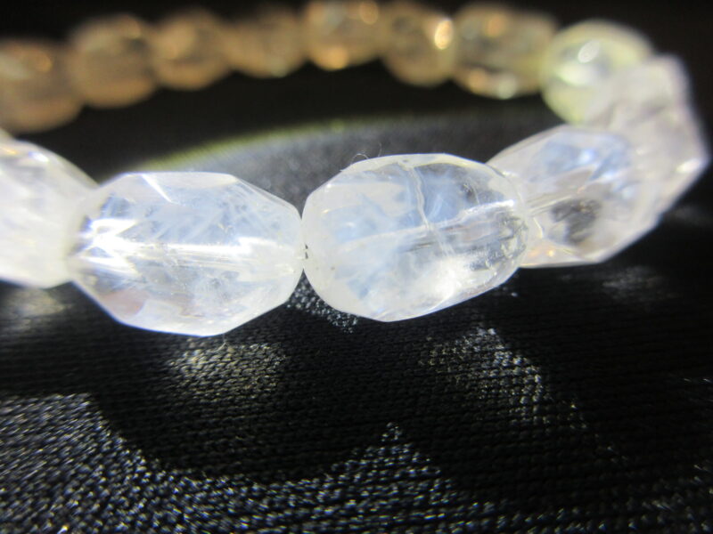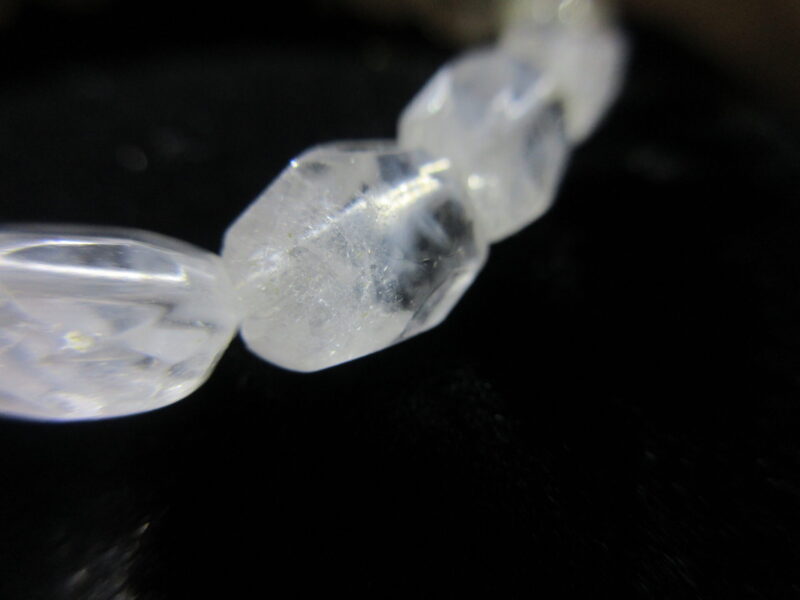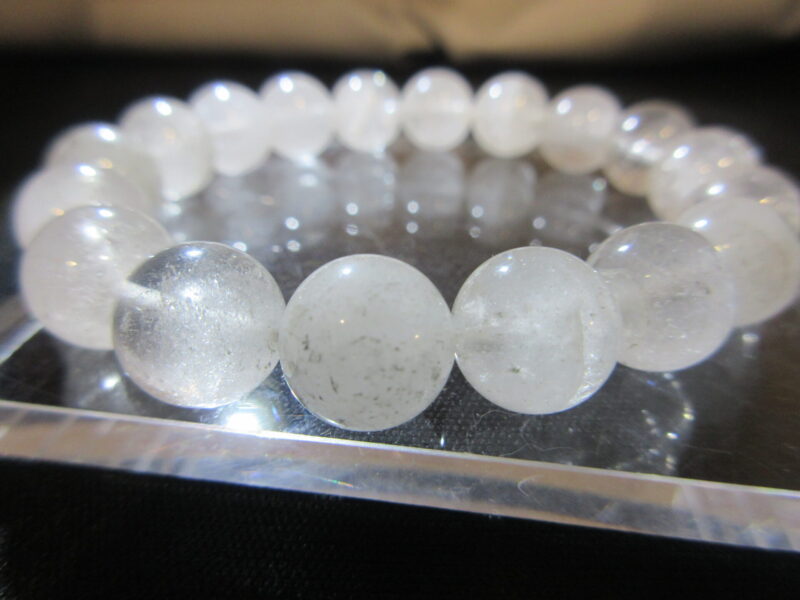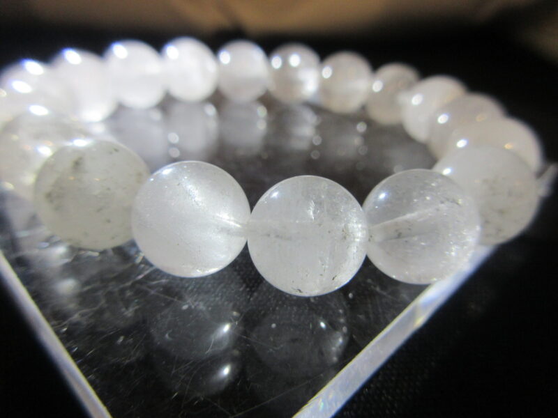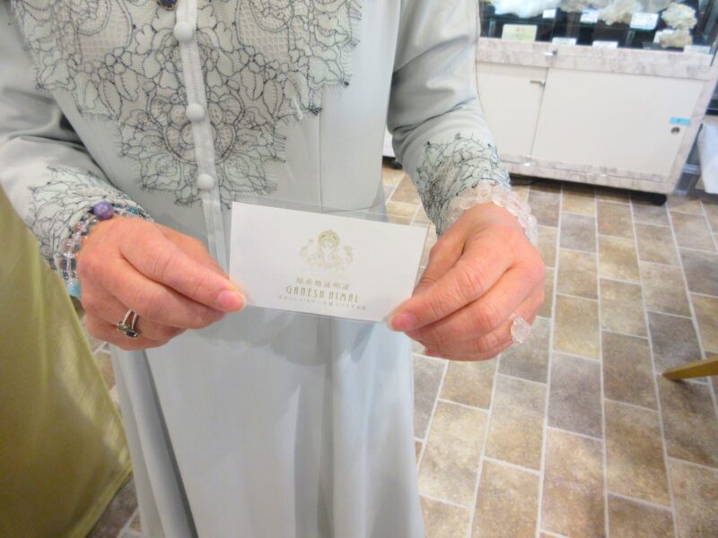 ショーケース内のガネッシュ水晶のブレスとエンジェルラダーのブレスを