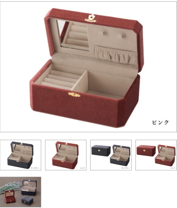 宝石箱みたいなケースに、リングやペンダント ブレスなど入れられます。