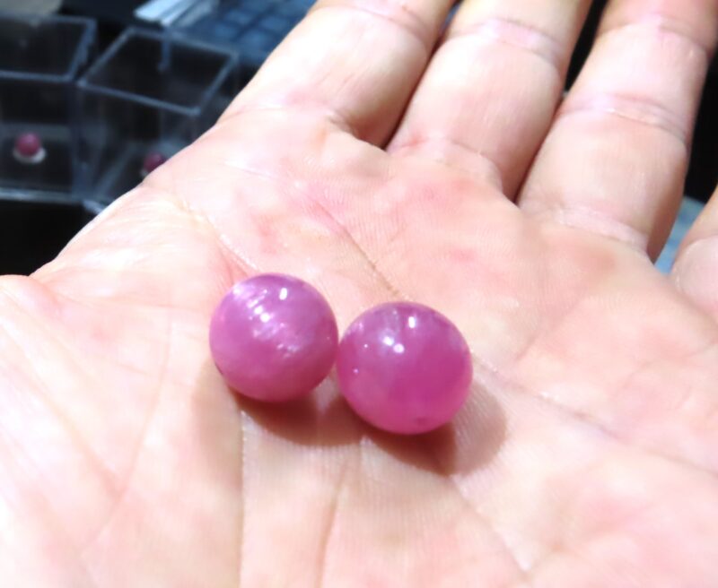 手のひらで戯れるピンクトルマリンキャッツアイの美人姉妹