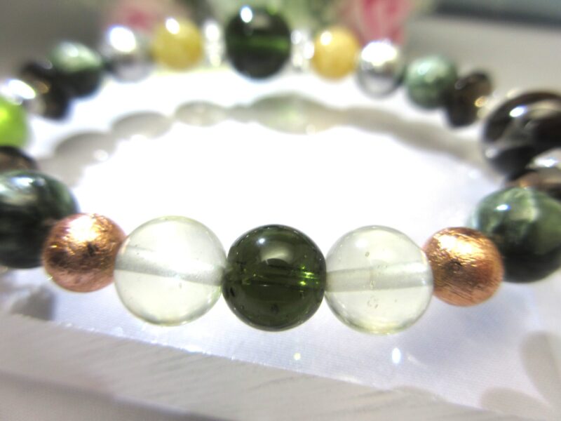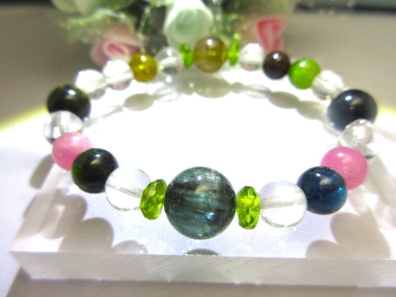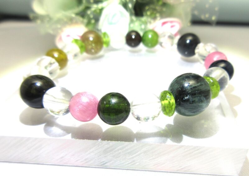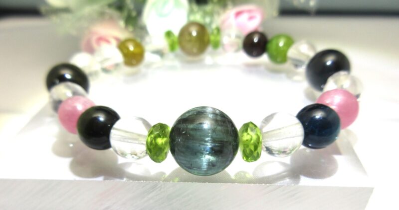 こちらは、12ミリのインディゴライトの左右に見えるピンクトルマリン キャッツアイ