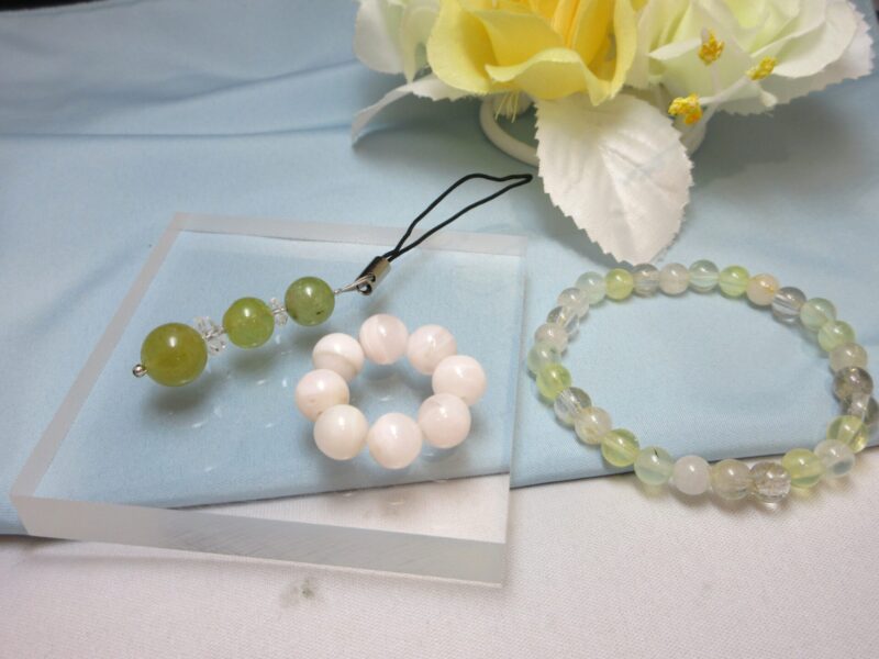 東京都 千葉県 パワーストーン 占い 墨田区にお住まいのK様 ルチルクォーツ プレナイト 他 ブレスレットストラップ リングのお作り