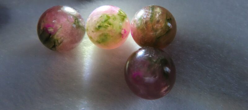 いろんな色のピンクとグリーンの混じるスイカ色 12㍉ですよ。