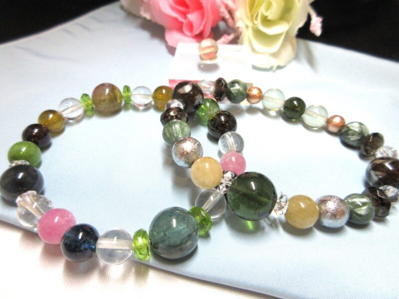 東京都 千葉県 パワーストーン 占い VIPのO様&K様 3種類のトルマリン パラサイト・セリコ隕石 オレゴンサンストーン ブレスレットのリメイクとお迎え