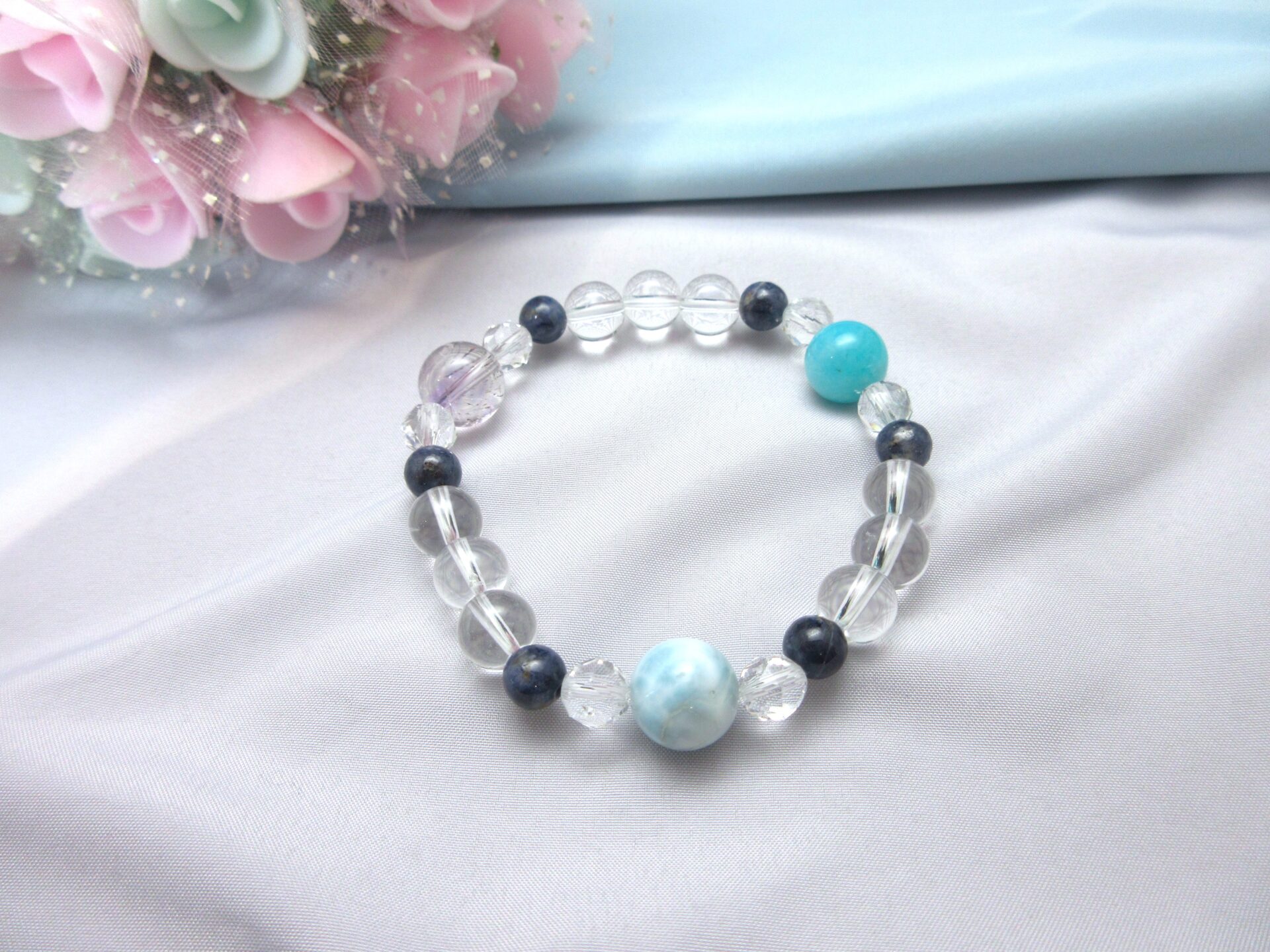 千葉 東京 パワーストーン 占い 船橋市のK様 ラリマー と アメジストエレスチャル とアマゾナイト のブレスレットのお作り