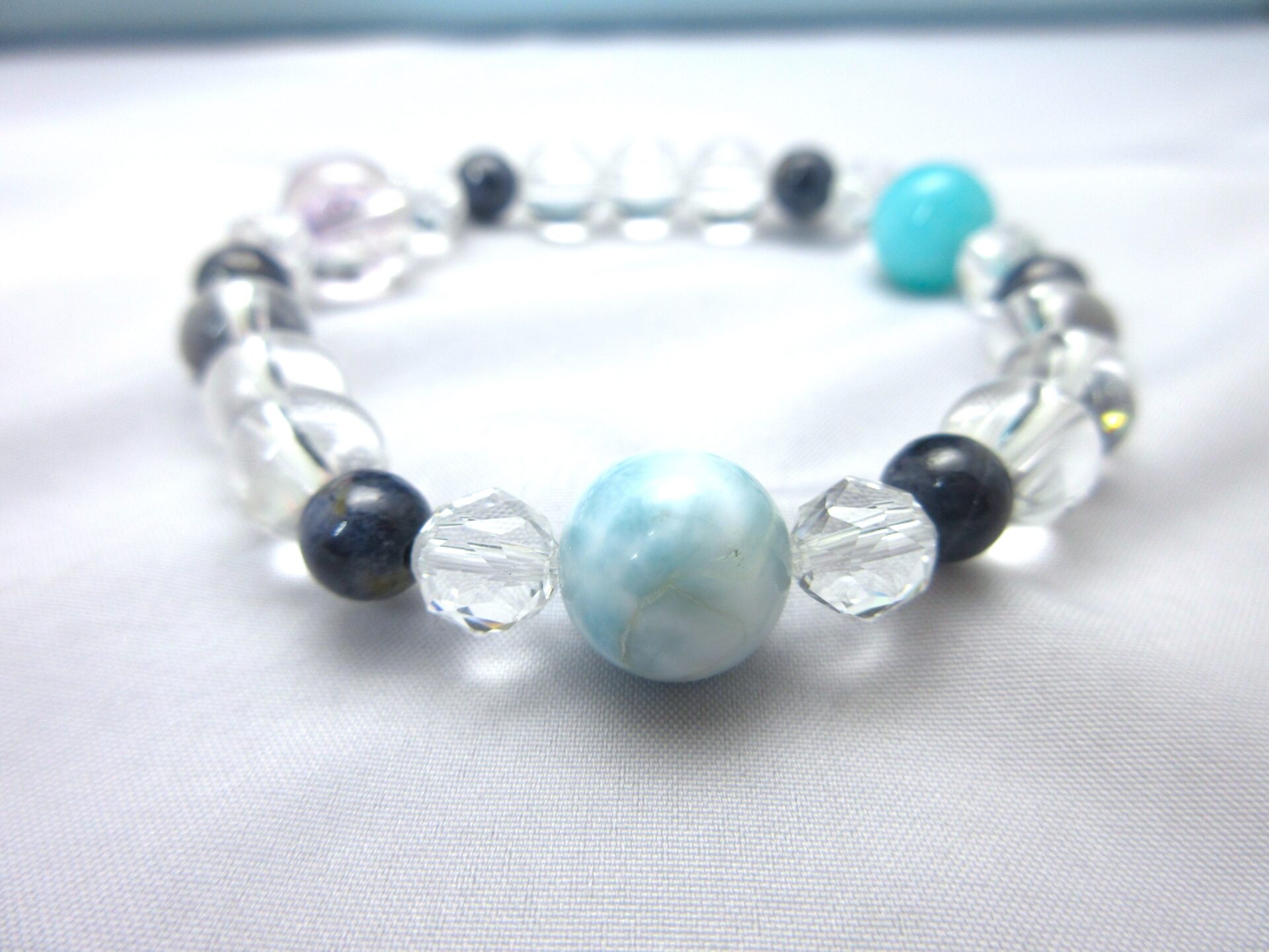 千葉 東京 パワーストーン 占い 船橋市のK様 ラリマー と アメジストエレスチャル とアマゾナイト のブレスレットのお作り