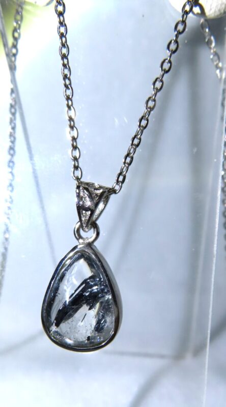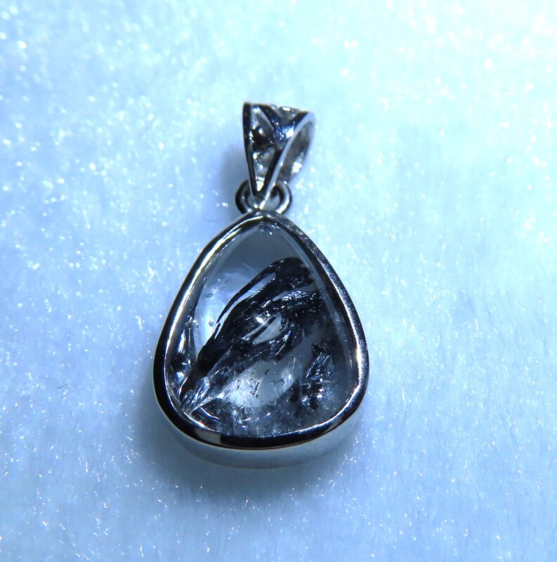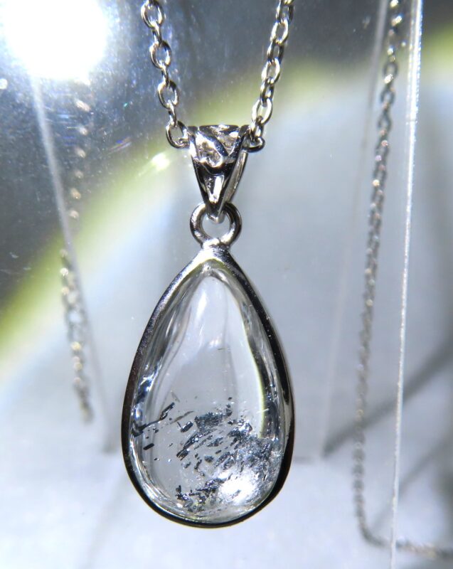 水晶の中に、輝安鉱という成分が入り込み奇跡的に出来上がった