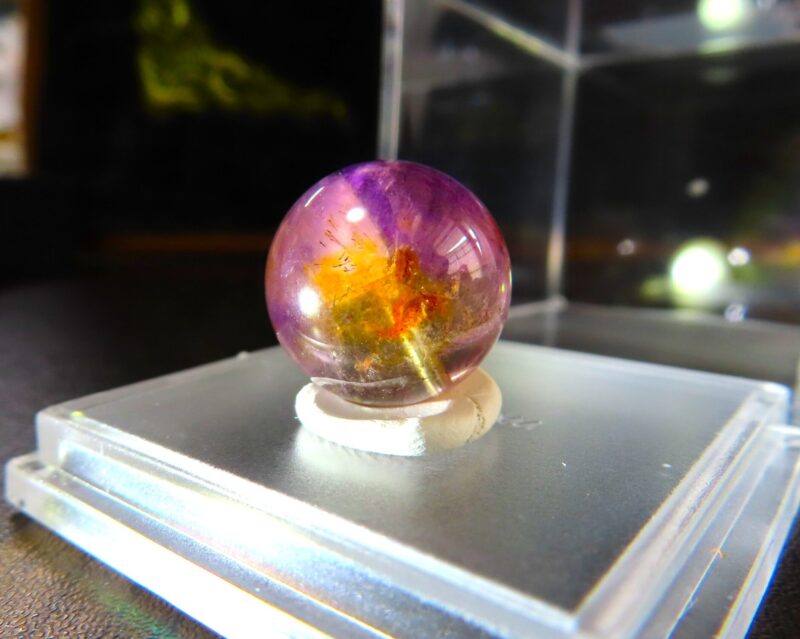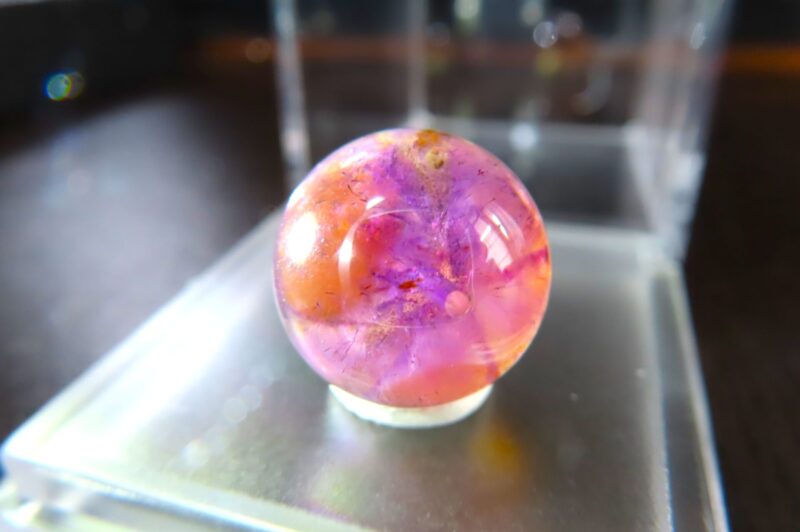 左からサンタマリア 黄色と紫の混じるアメトリンみたいなレムリアン