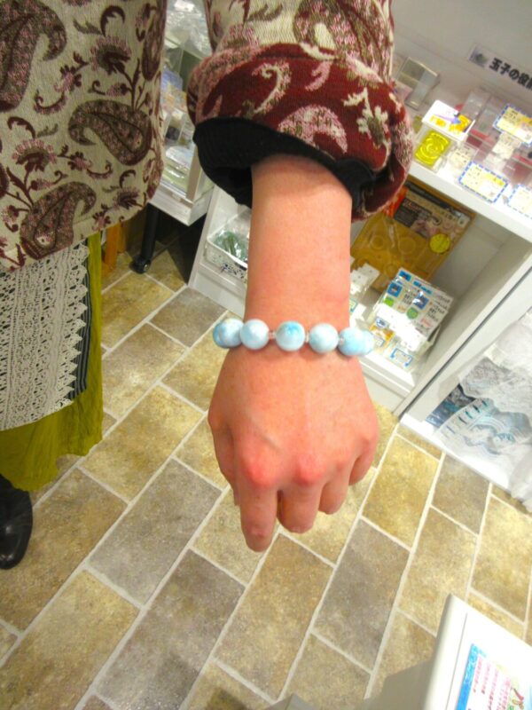 イオン鎌取のお客様、I様。今日は、15ミリのラリマーブレスをGETです。