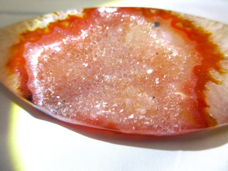 カーネリアンに小さな結晶が群生している希少なカーネリアンです