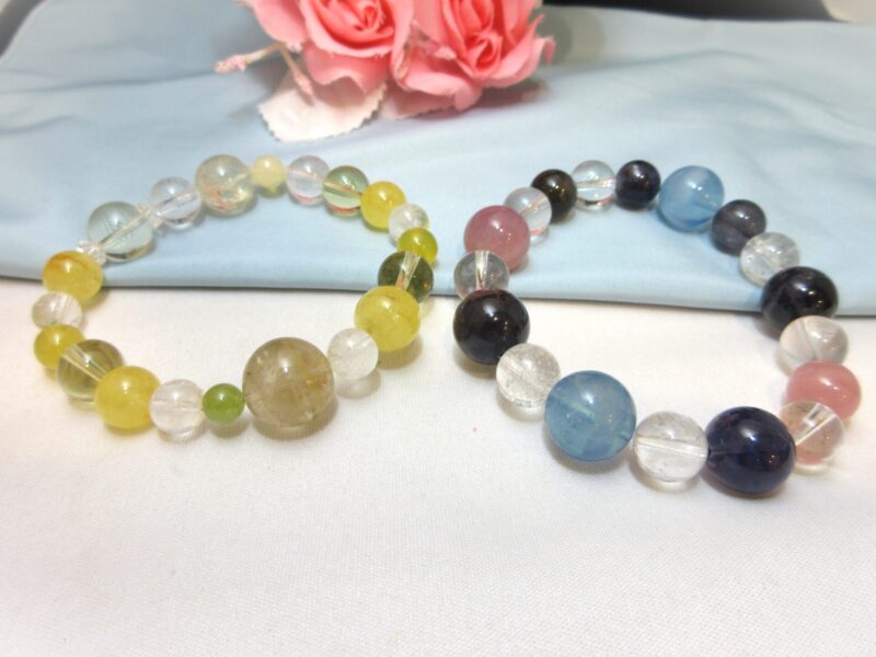 東京 千葉 パワーストーン 占い VIPのM様 サンタマリアアクアマリン オウロヴェルデクォーツ 他黄色い石たちでブレスレットのリメイク