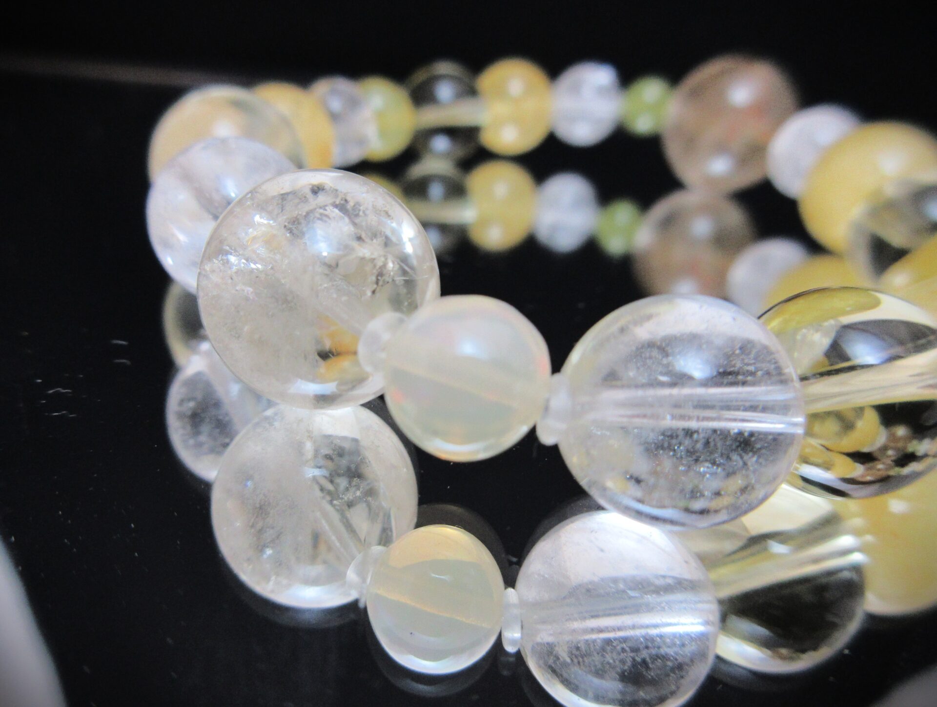 東京 千葉 パワーストーン 占い VIPのM様 サンタマリアアクアマリン オウロヴェルデクォーツ 他黄色い石たちでブレスレットのリメイク