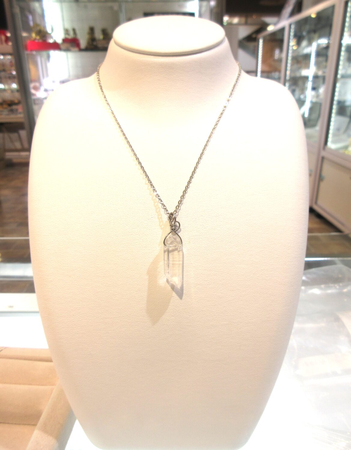 レーザークリスタルをペンダントにする。1,900円~販売