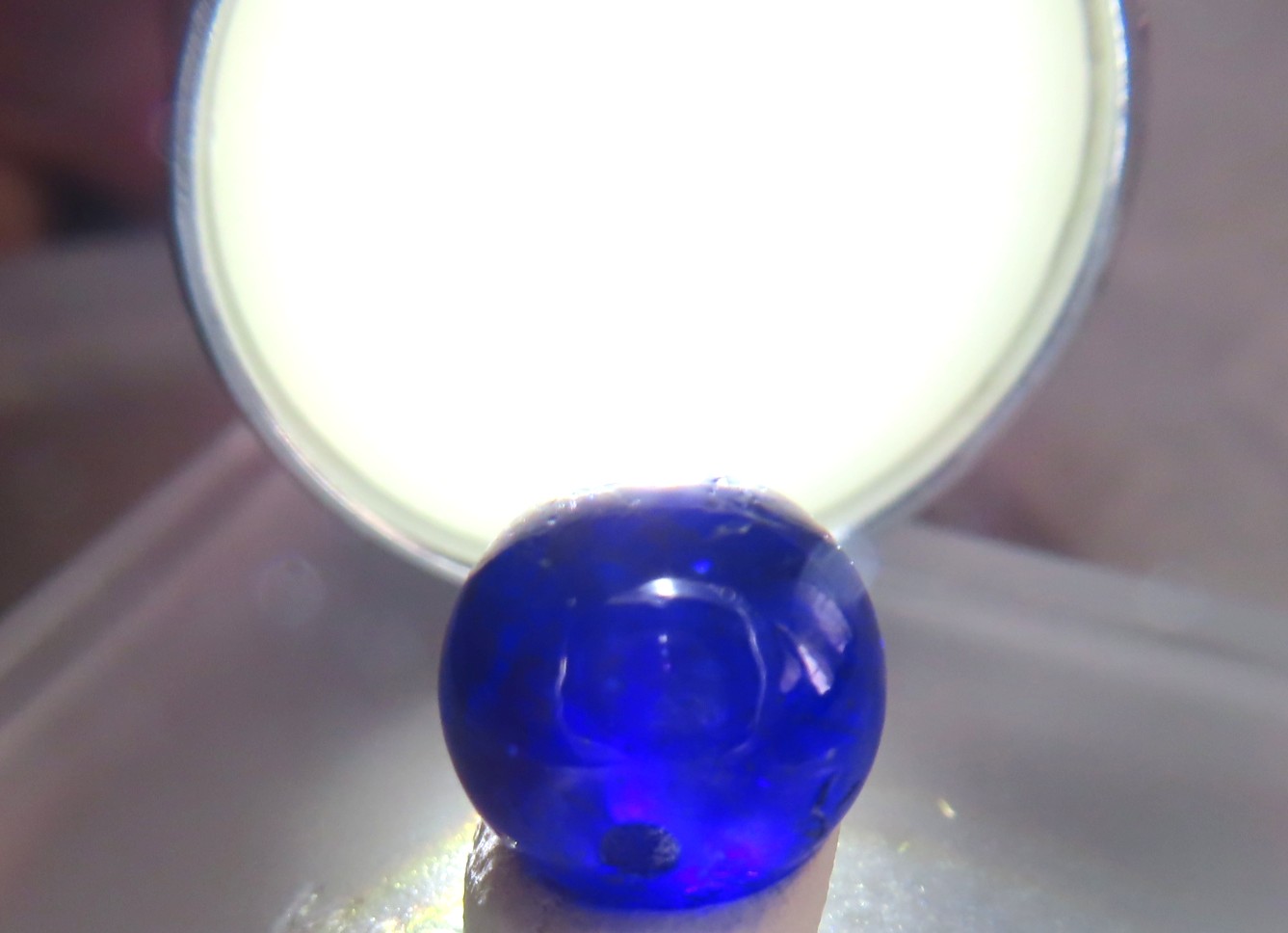光を与えると、鮮やかな通常のサファイアとは違う ブルー色