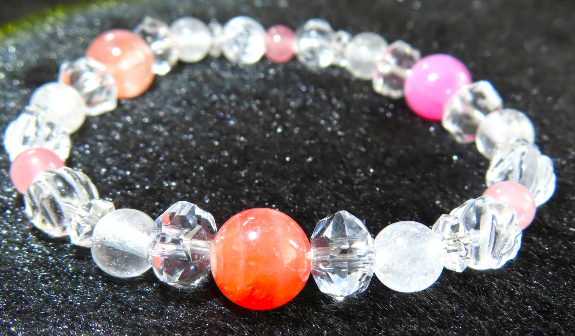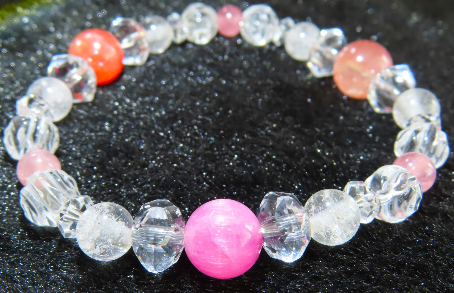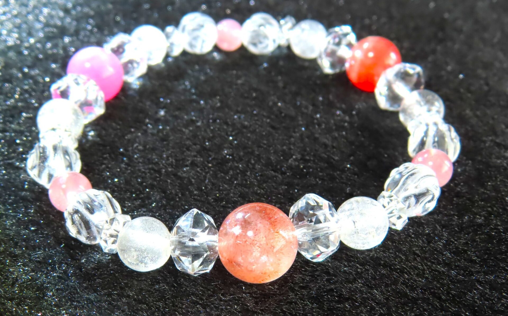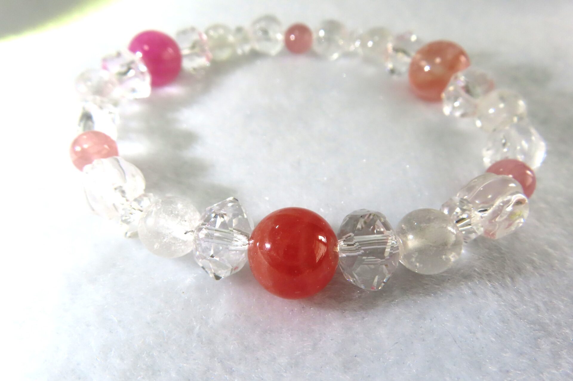 繋ぎには、ヒマラヤ水晶とローズクォーツを使用しました。