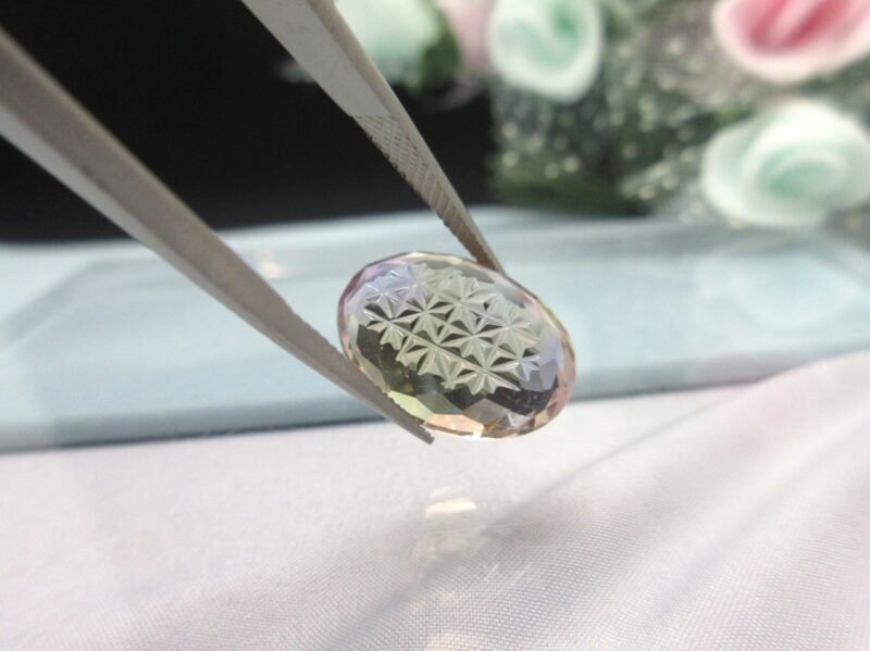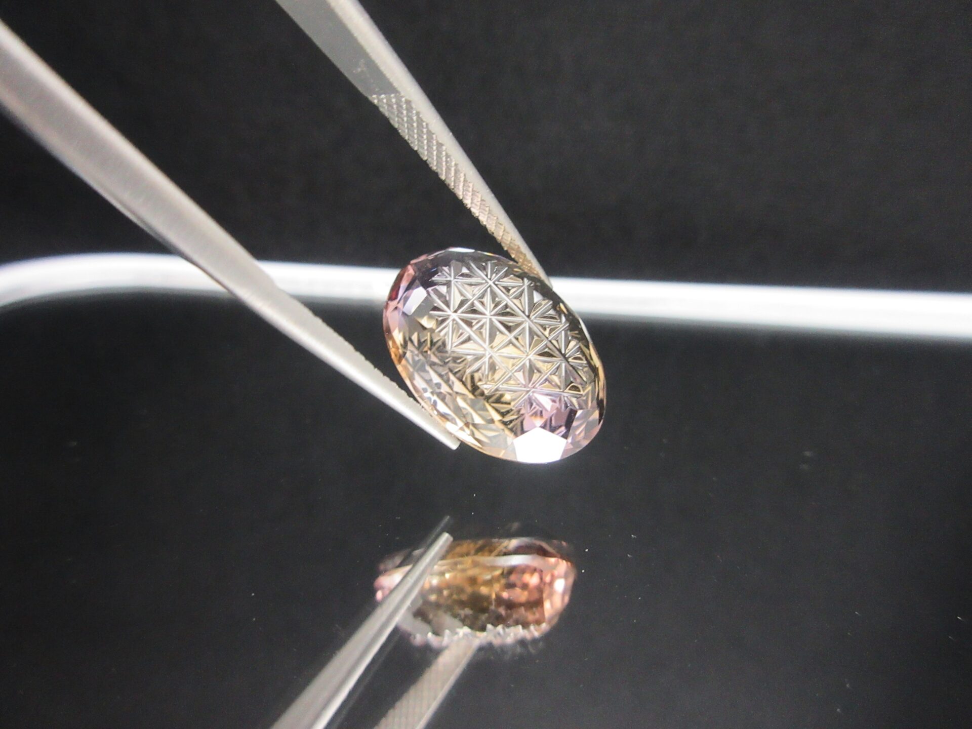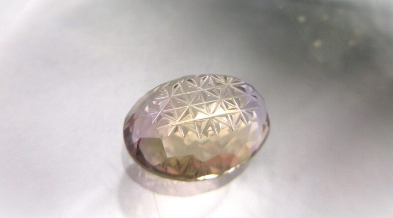 表面のファセットカットと裏面の切子細工が