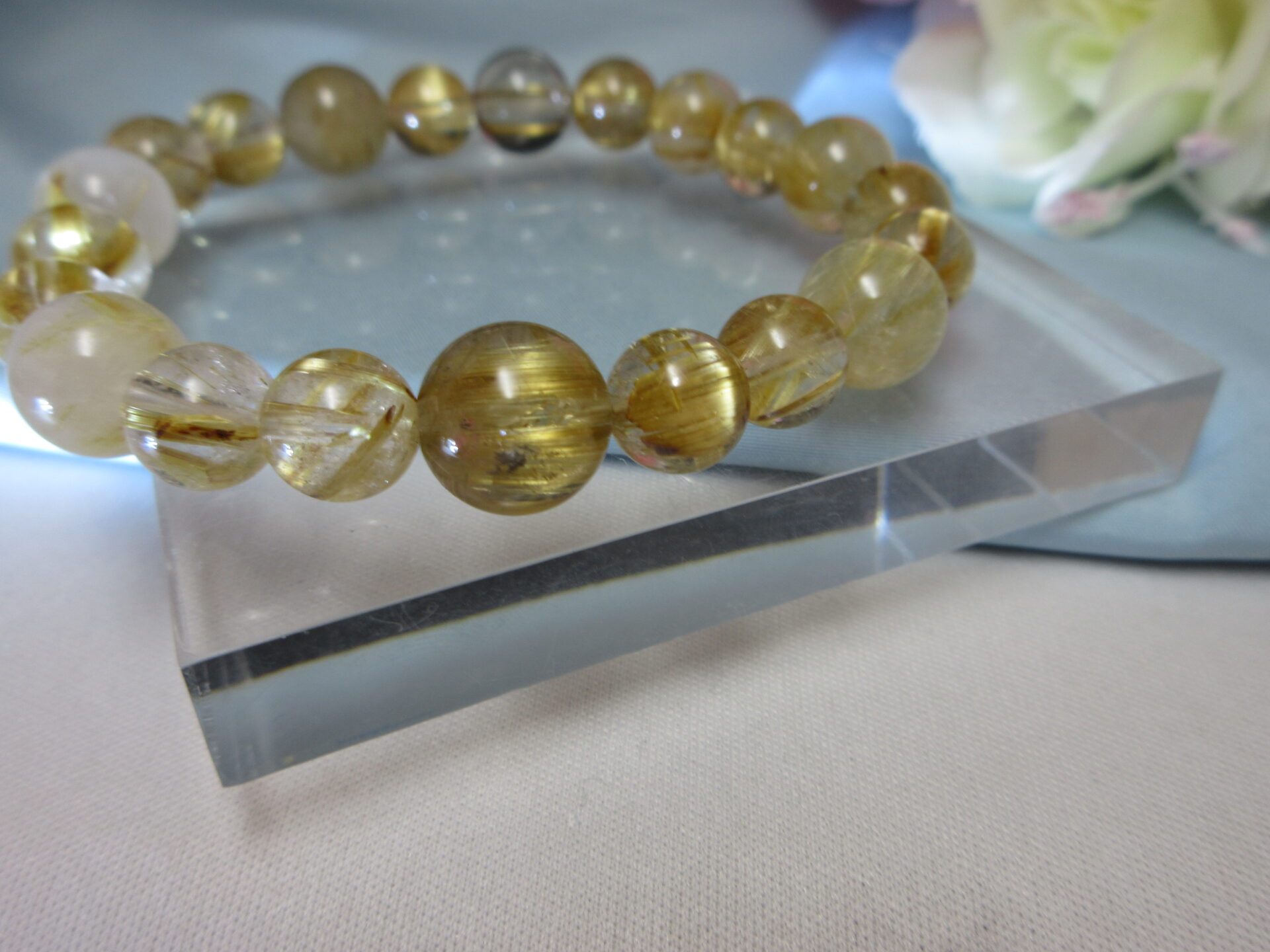 必需品の金運ブレスの、ゴムのお直しに来られた。